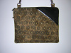 Cotton batik with 3D glitter fabric paint on the front to give a rich look. The front pocket is in ultra suede with a vegan leather trim. The back of bag is in the batik print only with no paint.